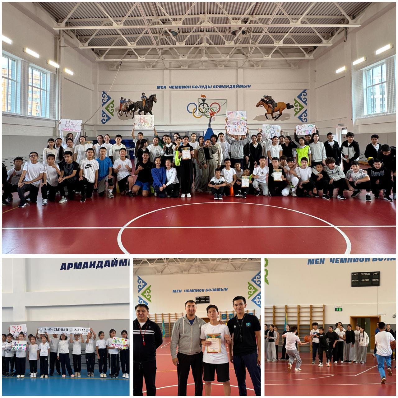 Денсаулық күніне орай мектебімізде кіші және үлкен спорт залдарында қызықты да тартымды спорттық эстафеталық жарыстар ұйымдастырылды. Бұл мерекелік шараға барлық сынып оқушылары белсене қатысып, өздерінің ептілігі мен ұйымшылдығын көрсетті. Жарыстар жоғары деңгейде, әсем әрі көңілді форматта өтіп, қатысушыларға көтеріңкі көңіл күй сыйлады.