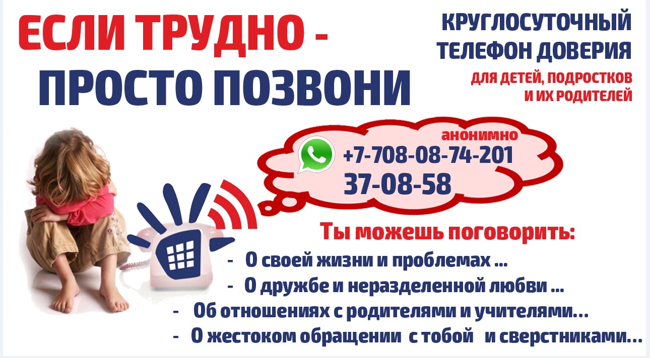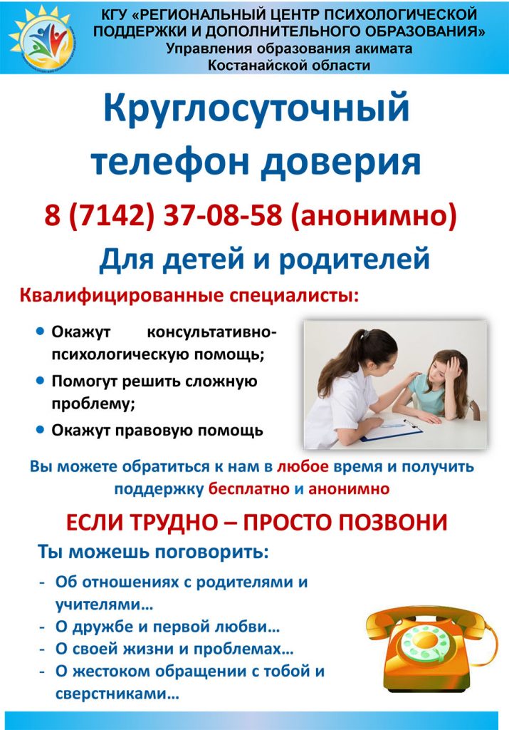 Короткий номер «150» – круглосуточная, анонимная квалифицированная помощь по Костанайской области, звонок бесплатный.